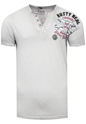 T-shirt met V-hals, suède details en een patroon van klinknagels