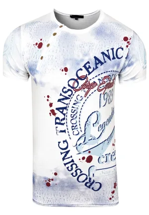 Olie-gewassen T-shirt met knoopsluiting