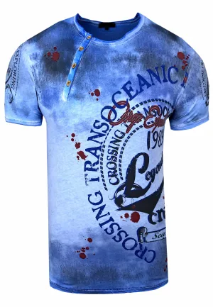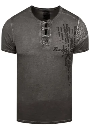 Olie-gewassen T-shirt met knoopsluiting