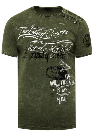Olie-gewassen T-shirt met knoopjes aan de zijkant en prints