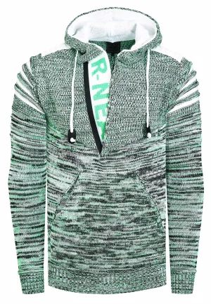 Contrasterende grof gebreide hoodie met 1/2 rits
