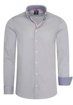 Stretch casual overhemd met dubbele kraag