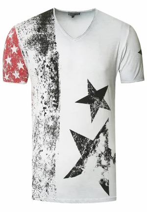USA T-shirt met sterren en strepen en V-hals in gebruikte look