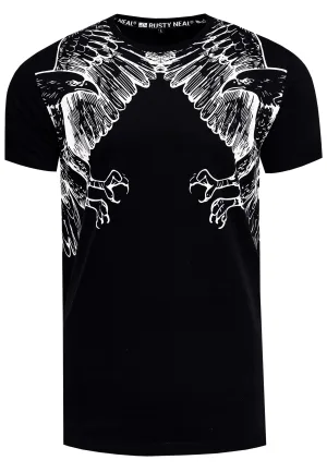 Gewassen biker T-shirt met voor- en achterkant bedrukt