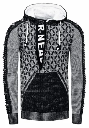 Contrasterende grof gebreide hoodie met 1/2 rits