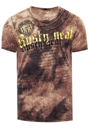 Gewassen biker T-shirt met voor- en achterkant bedrukt