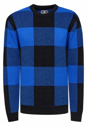 Zware geruite contrasterende grof gebreide trui