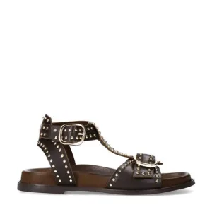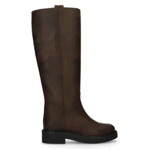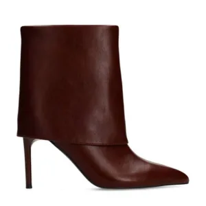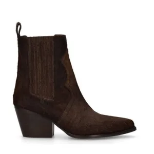 Sacha leren enkellaarzen met ponyhair donkerbruin