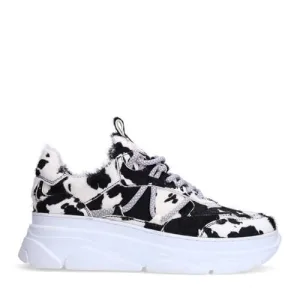 Sacha chunky leren sneakers met ponyhair en koeienprint zwart/wit