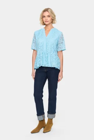 Blouse met korte mouwen Regular fit Airy Blue light blue