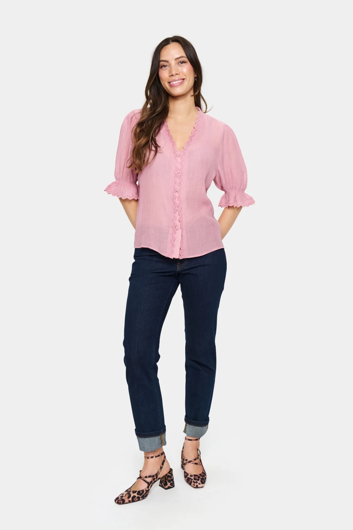 Blouse met korte mouwen Regular fit Pink Nectar rose