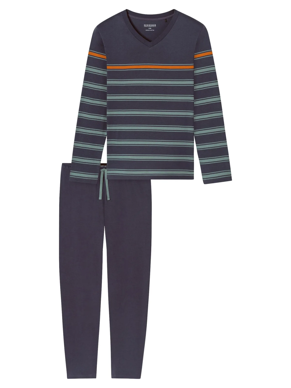 SCHIESSER Pyjama lang ‘Fine Interlock’ donkerblauw / wit
