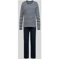 SCHIESSER Pyjama lang ‘ Fine Interlock ‘ nachtblauw / wit