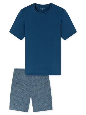 SCHIESSER Pyjama kort ‘Casual Essentials’ lichtblauw / donkerblauw / lichtgrijs