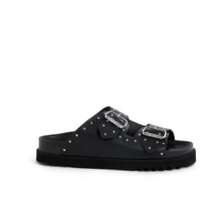 Scholl Beatriz leren slippers met studs zwart