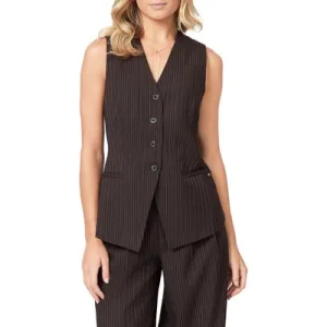 Scotch & Soda Long Line Vest Brown Pinstripe