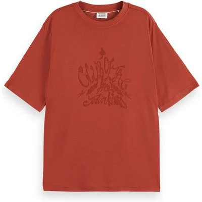 Scotch & Soda Burn Out Artwork Relaxed Fit T-shirt Rust