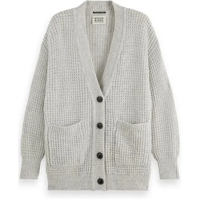 Scotch & Soda Textured Stitch Oversized Cardigan Light Grey Melange