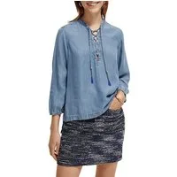 Scotch & Soda Lace Up Denim Washed Indigo Tencel Shirt Indigo