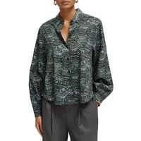 Scotch & Soda Printed Balloon Sleeve Shirt Feather Bottle Green