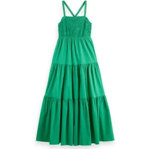 Scotch & Soda Maxi Dress With Smock Detail Scuba Green