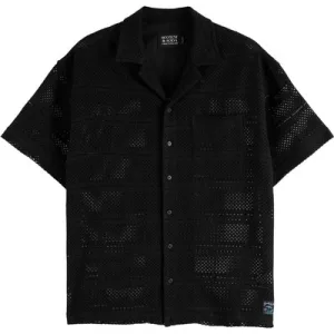 Scotch & Soda Crochet Short-sleeved Relaxed-fit Shirt Washed Black