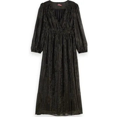 Scotch & Soda Midi Dress With Lurex And Puff Sleeve Evening Black