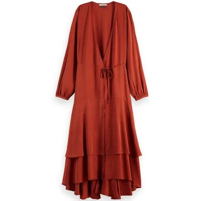 Scotch & Soda Viscose Jacquard Midi Wrap Dress Rust