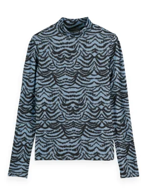 Scotch & Soda Ls Mock Neck Tee Tweed Plaid