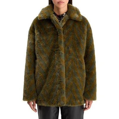 Scotch & Soda A-line Faux Fur Coat Olive