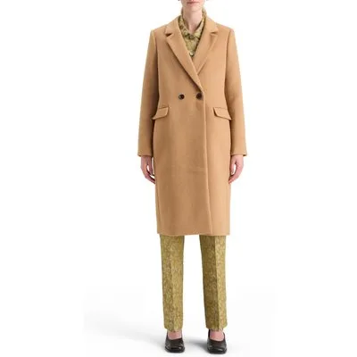 Scotch & Soda Single Breasted Herringbone Wool Blend Tailored Coat Tabacco