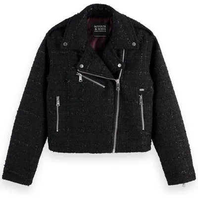 Scotch & Soda Boucle Tweed Biker Jacket Evening Black