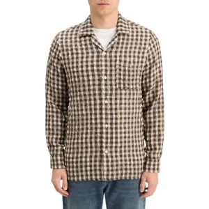 Scotch & Soda Seersucker Wool Blend Check Shirt Brown Check