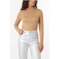 Scotch & Soda Lurex Stripe Mock Neck Camel / Silver