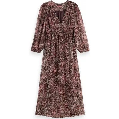 Scotch & Soda Midi Dress With Lurex And Puff Sleeve Shibori Floral Pink