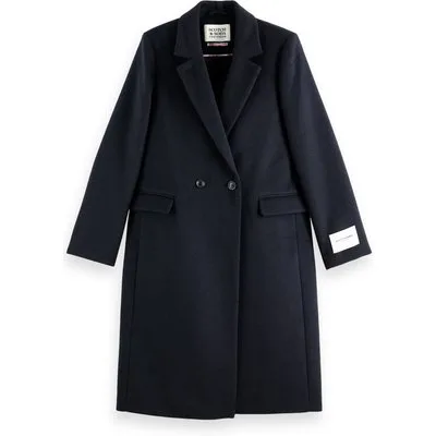 Scotch & Soda Single Breasted Herringbone Wool Blend Tailored Coat Black A