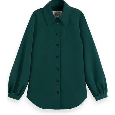 Scotch & Soda Crepe Peasant Sleeve Overshirt Cypress Green