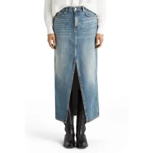 Scotch & Soda Long Vintage Washed Denim Skirt With Front Split Frisco Nigh