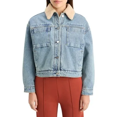 Scotch & Soda Washed Denim Jacket With Sherpa Details Washed Indigo