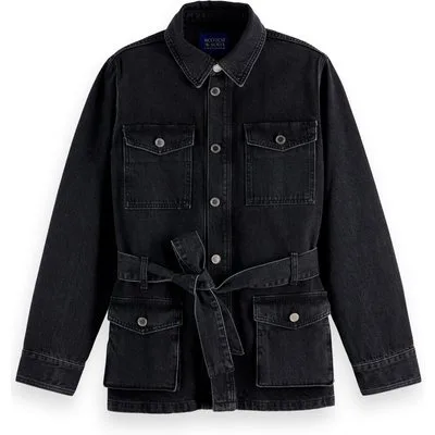 Scotch & Soda Worked Out Black Cargo Denim Jacket With Belt City Buzz
