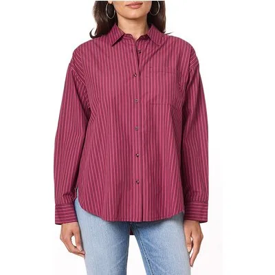 Scotch & Soda Boyfriend Shirt W/ Button Dtl Burgundy/magenta