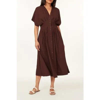 Scotch & Soda Multi Pleated Dolman Dress Puce