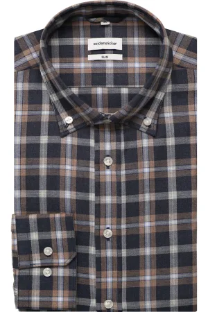 Seidensticker Flanellen Overhemd donkerblauw, Ruit