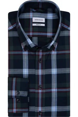 Seidensticker Flanellen Overhemd blauw, Ruit