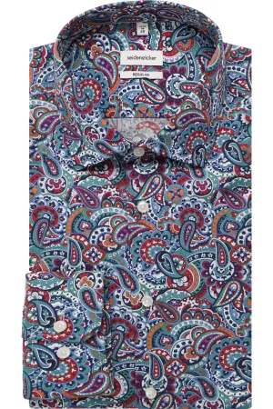 Seidensticker Overhemd blauw/groen/rood, Paisley