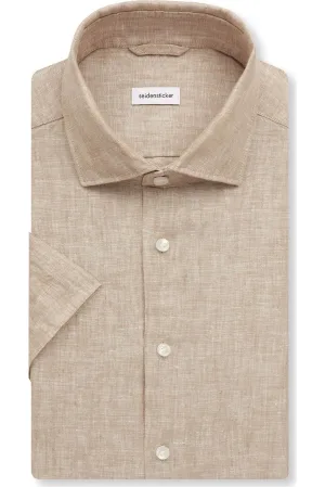 Seidensticker Linnen Overhemd zand, Effen