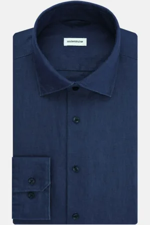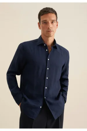 Seidensticker Linnen Overhemd donkerblauw, Effen
