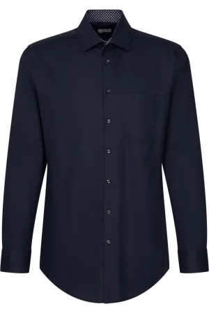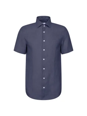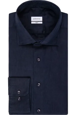 Seidensticker Linnen Overhemd donkerblauw, Effen