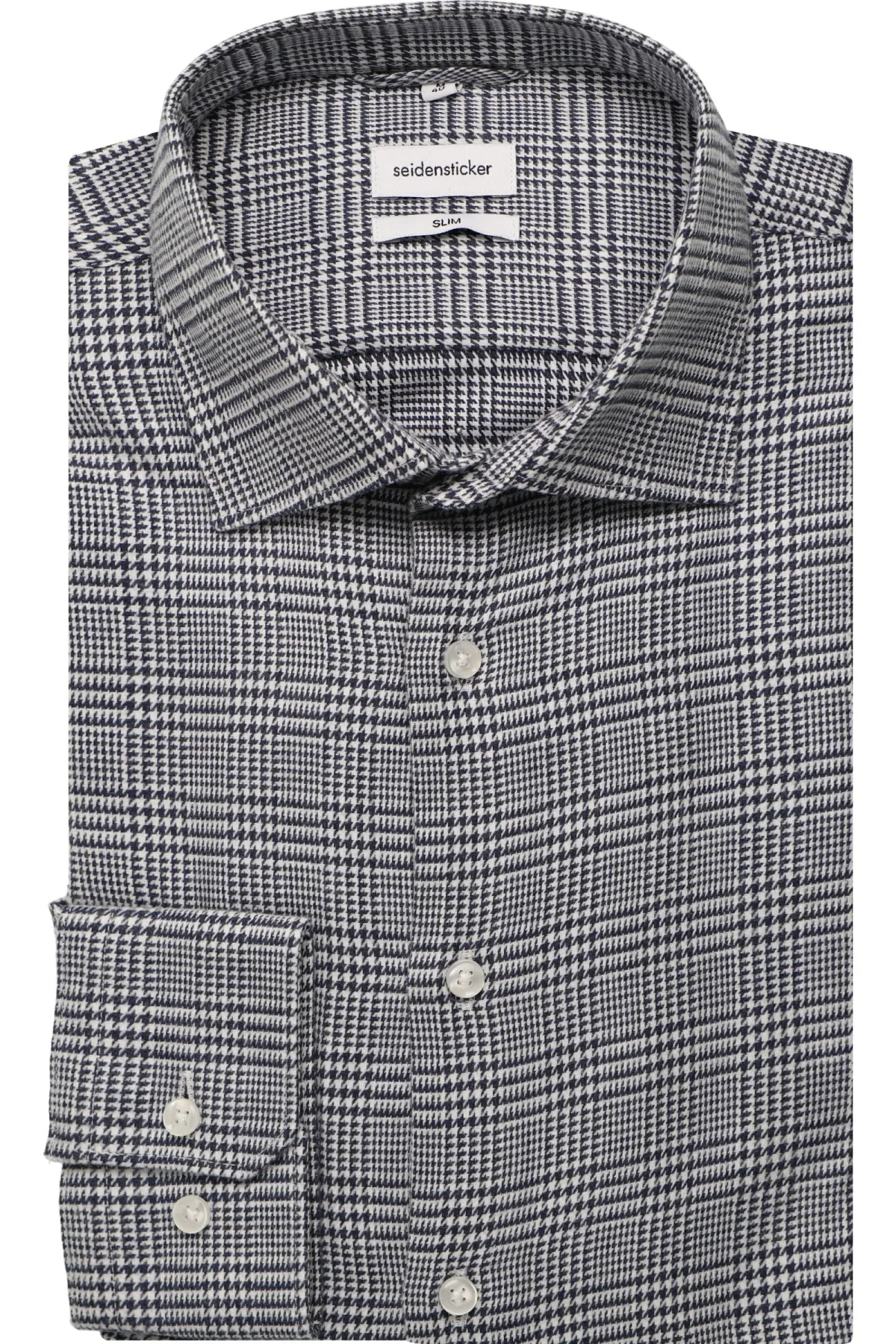 Seidensticker Flanellen Overhemd donkerblauw, Ruit