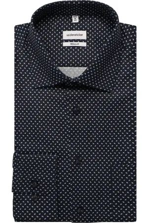 Seidensticker Overhemd donkerblauw, Bedrukt